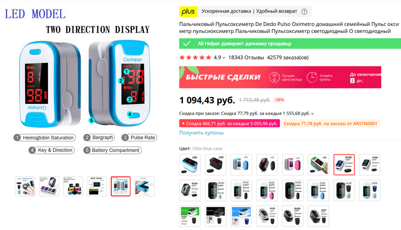 Это было написано в апреле, сейчас с пульсоксиметрами проблем никаких нет, но иметь такой приборчик дома, я думаю, более чем имеет смысл. Поэтому, собственно, на них такой спрос - более 42 тысяч заказов.