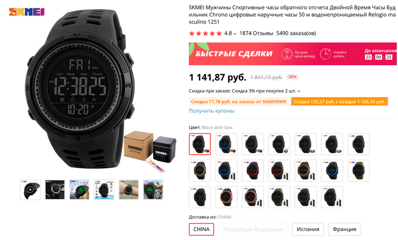 Мужские спортивные часы SKMEI. Что умеют за эти деньги? Ну, понятное дело, спорт не отслеживают. Однако показывают время, календарь, поддерживают несколько часовых поясов, есть будильник, влагонепроницаемые до 50 метров (длительное плавание не поддерживают), и есть подсветка. Судя по внешнему виду, это такой закос под SUUNTO. Но за 1141 рубль - очень даже нормально. У меня одно время были Suunto, стоили тогда порядка 16 тысяч рублей. Прожили, кстати, не очень долго - через два года умерли, что меня несколько огорчило.