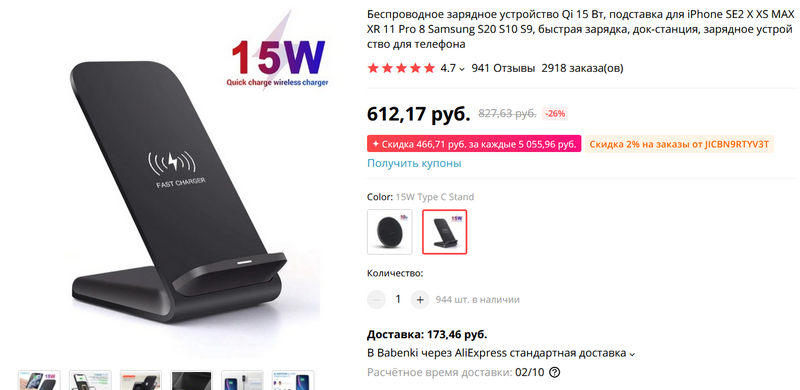 Удобное быстрое беспроводное зарядное устройство на 15 ватт.