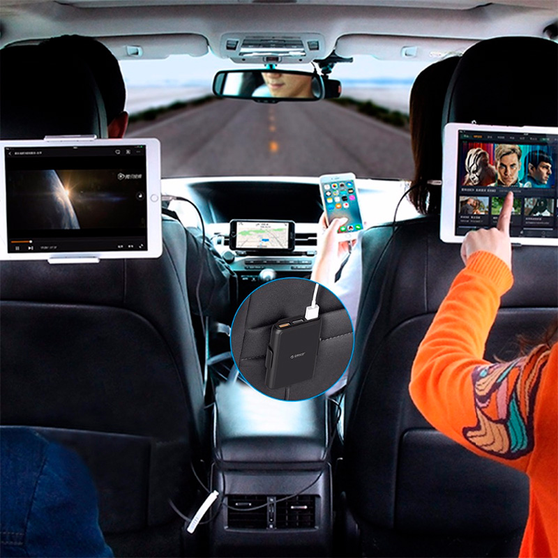 Если приходится в машине заряжать несколько устройств, а в особенности когда еще и требуется подзарядка на заднем сиденье, вот отличный вариант от Orico (люблю я этого производителя, у меня немало их устройств) - адаптер с двумя портами и еще один хаб с тремя портами. Общая мощность - 52 ватта, хватит для всего.