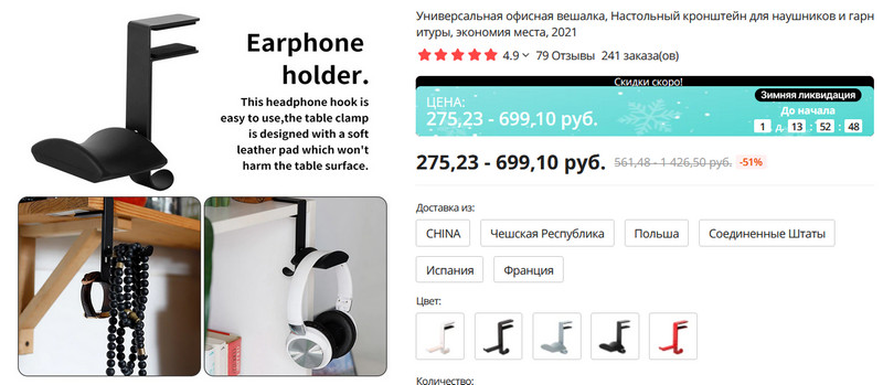 Универсальный держатель для различных предметов (прежде всего для наушников), крепящийся к торцу стола, чтобы не занимать место на столе.