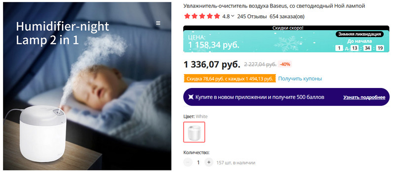 Актуальная штука для зимы - компактный и бесшумный увлажнитель воздуха Baseus на 600 мл. Два режима работы, есть автоотключение, защита от проливания воды, также может работать ночником.