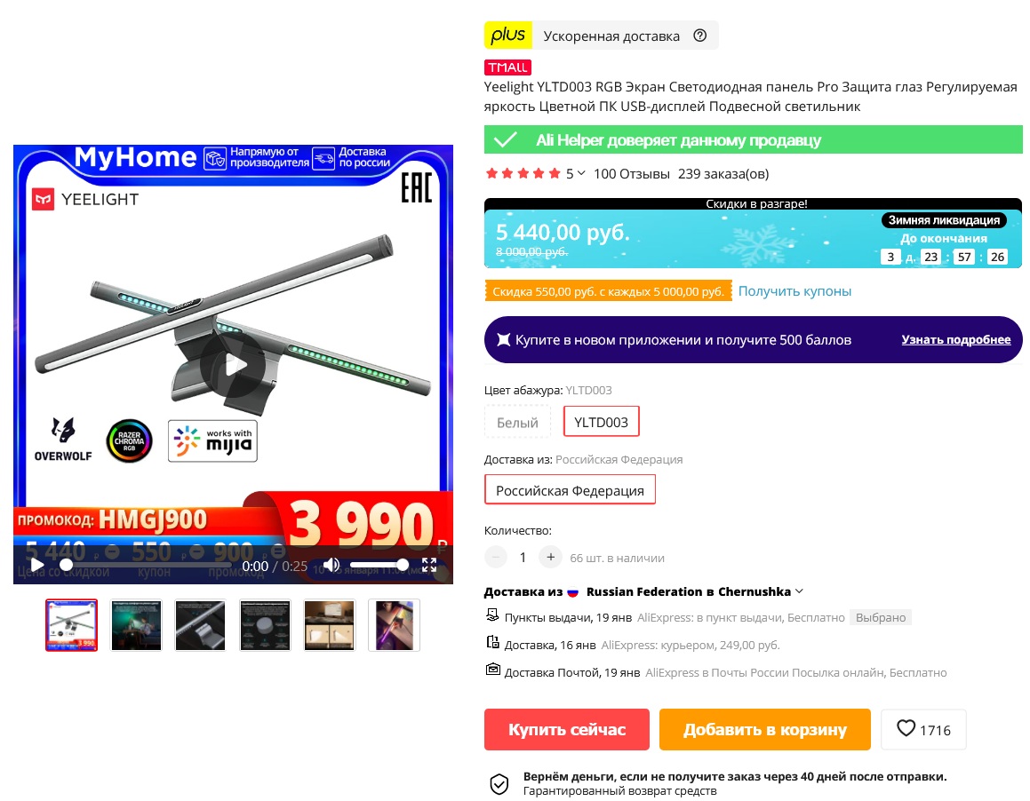 Цена сейчас формируется: 5440 - 550(купон на странице) - 900(промокод HMGJ900)= ИГОГО 3990 руб. Намного дешевле, чем в Яндексах, М-Видео, ДНС и прочих Вайлдберрис.