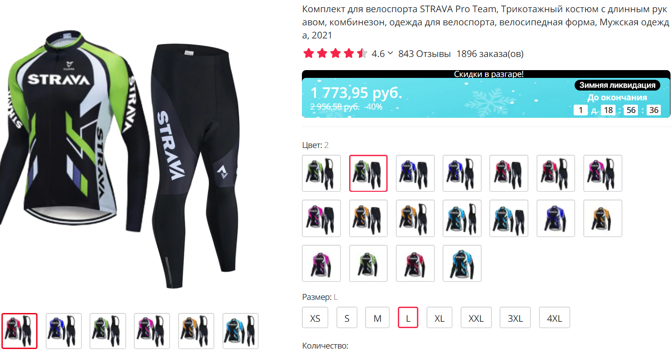 Заинтересовал комплект для велоспорта STRAVA за 1774 руб.