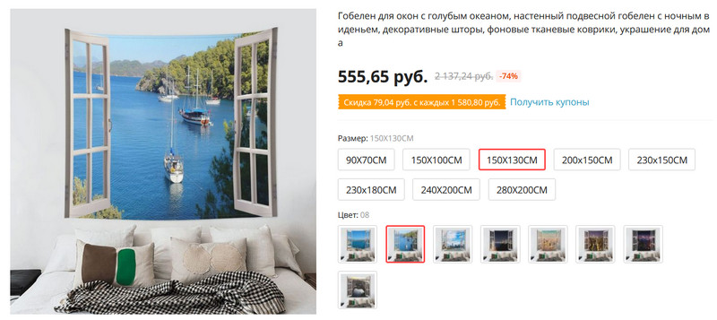 Недорогие настенные гобелены различных размеров для визуального расширения пространства помещения. Я как раз на стенке в кабинете хотел фотографию поменять - закажу гобелен с окошком, посмотрю, как будет выглядеть.