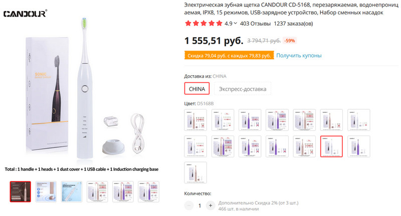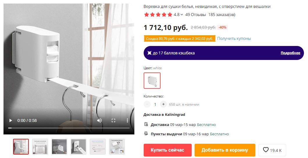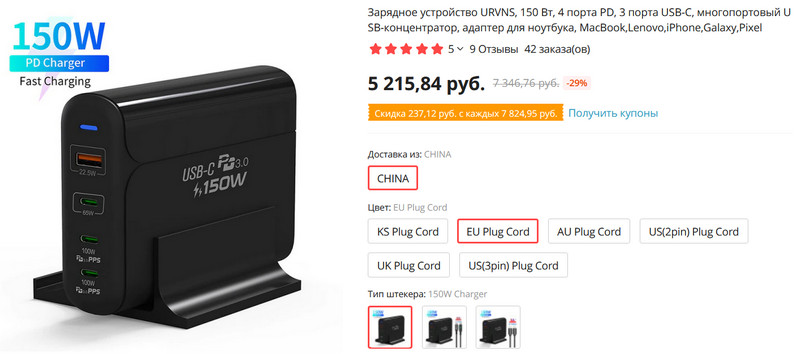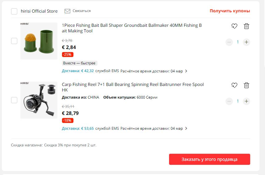 - Купоном продавца (берется на странице с товаром) – 158,08 руб.