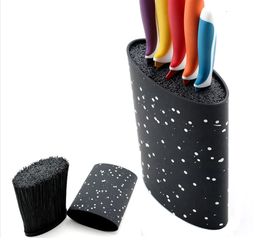 Подставка для ножей Huohou HU0050. Искал деревянную доску с магнитами, но в результате купил эту. Тихий восторг. Легко влезет штук шесть (нафига их столько?) больших шеф-ножей и еще дюжина средних и маленьких. Мусат с ножницами.