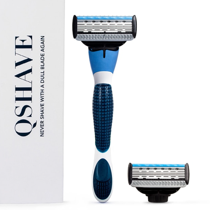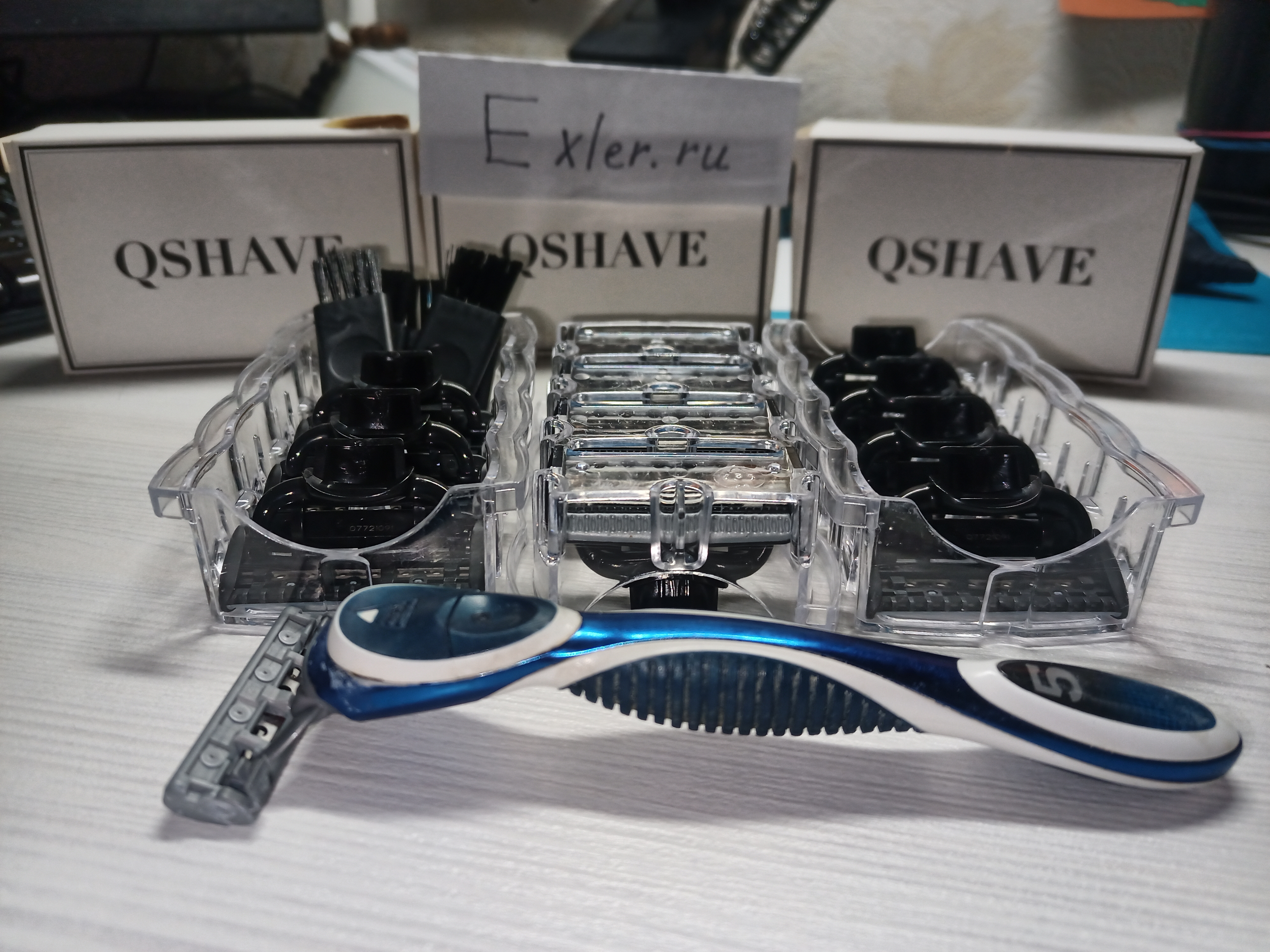 3. Бритвенный станок QShave Blue (~1350 руб.) - 9 кассет c 5-мя лезвиями +1 кассета с 3-мя лезвиями (сам начинал с такого комплекта).