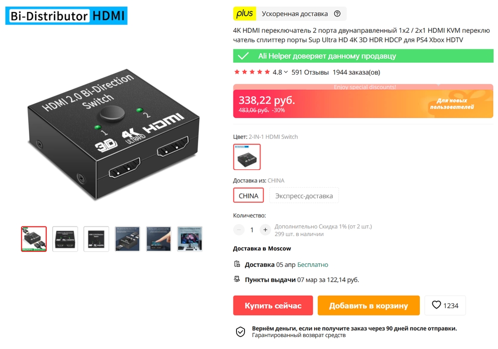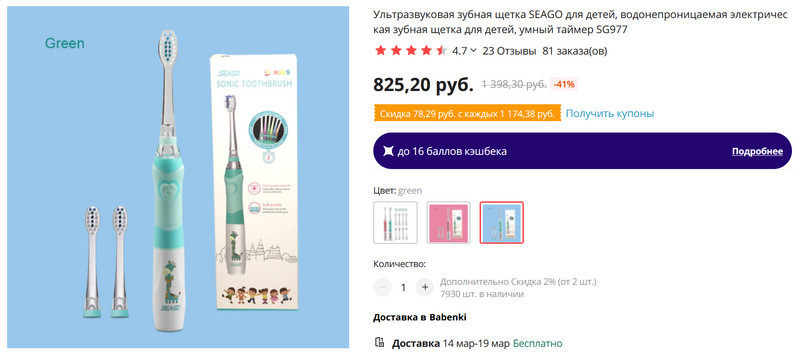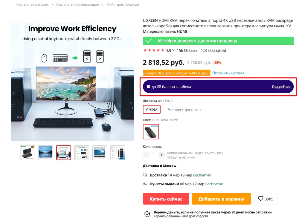 Кстати, недавно Алиэкспресс запустил своего рода кешбек в мобильном приложении - баллы за покупки. На этом товаре есть плашка с баллами. Почитать подробнее можно здесь.