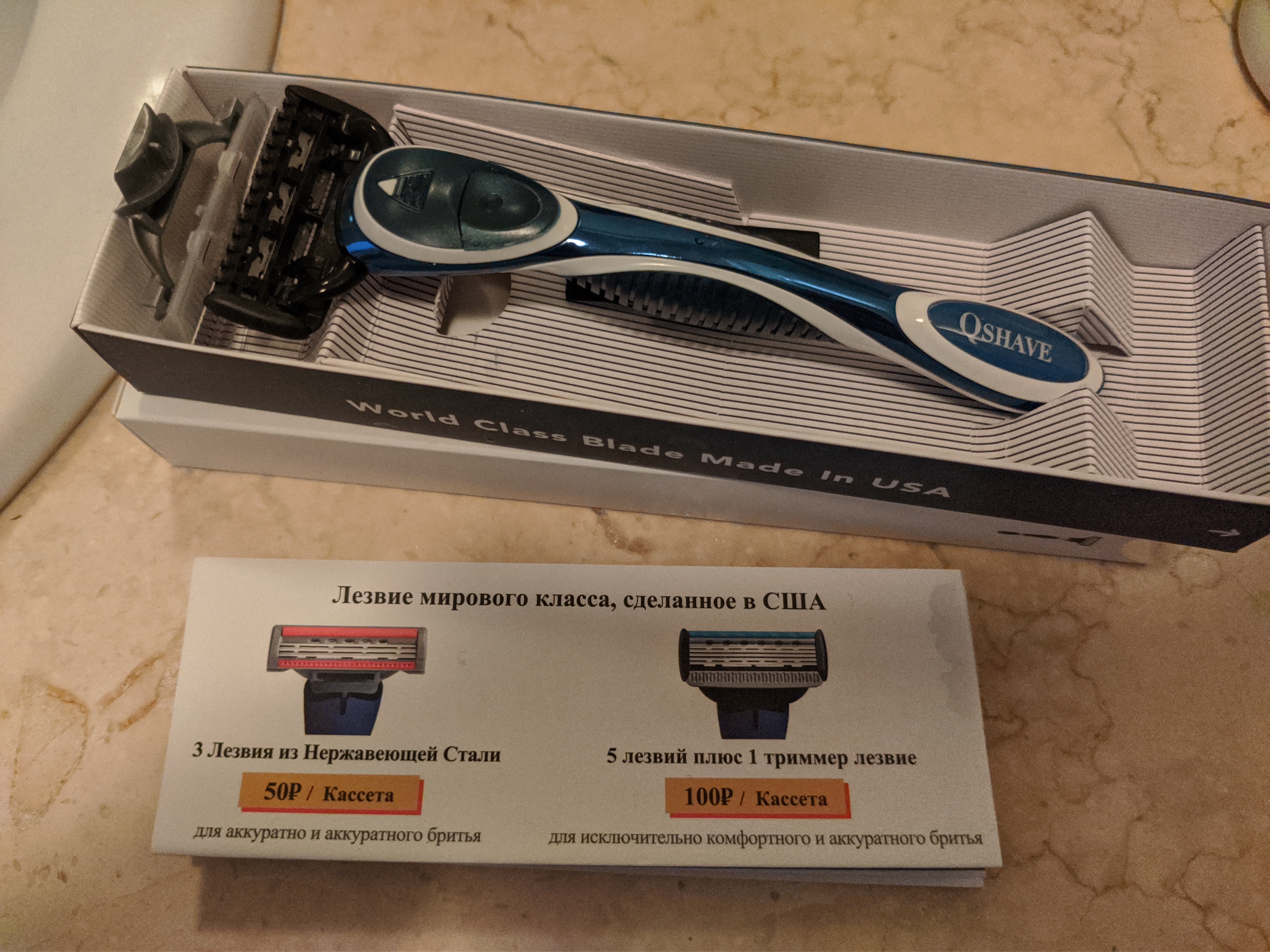 Бритва для мужчин QShave Blue, 1 ручка и 10 картриджей (1 лезвие X3, 9 лезвий X5)