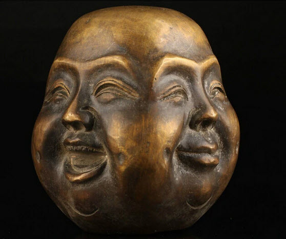 Старые коллекционные бронзовые литые радости, духовные печали, четыре лица, статуя Будды, Бронзовая голова