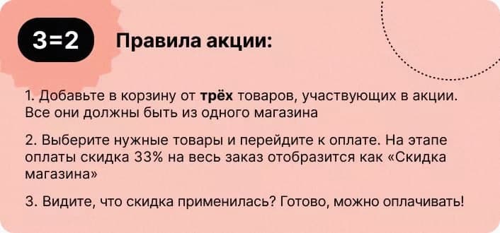При покупке от 3-х товаров в одном магазине. Список магазинов по ссылке.