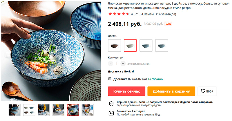 Люблю такое - восьмидюймовые керамические миски в японском ретростиле. Могут использоваться для чего угодно: для салатов, супов, лапши и так далее. Закажу себе. Я с Aliexpress немало посуды заказывал, все всегда приезжало очень тщательно упакованным, сбоев не было ни разу.