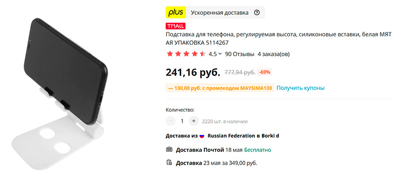 Простая, но очень удобная подставка для смартфона. Доставка с российского склада.