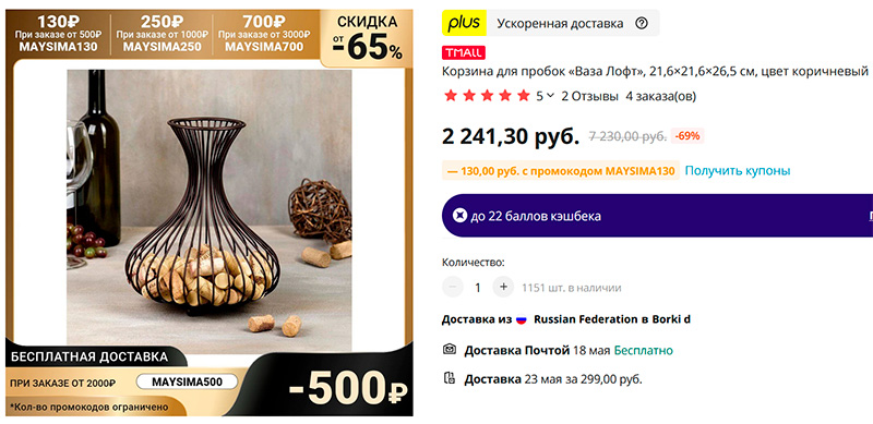 Давно себе искал такую штуку - вазу для пробок. Ну нравятся мне такие штуки. И пробок у меня - завались! Есть ускоренная доставка.