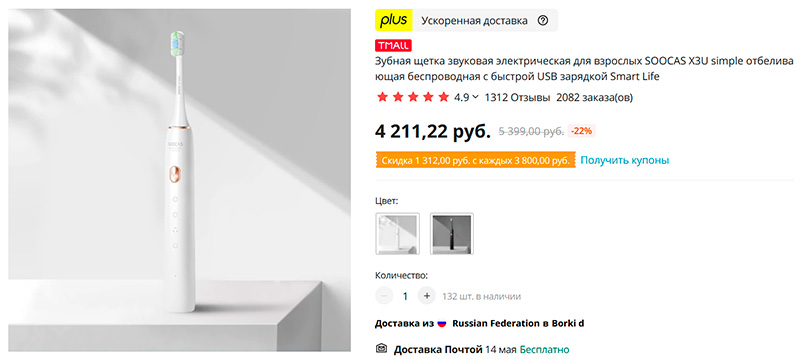 Всегда популярные электрические зубные щетки SOOCAS X3U. У меня такая почти ровно год, используется раза три в день, у сына такая же - тоже почти год. Несколько режимов работы, зарядка через порт USB. Классная штука, очень удобная, прямо-таки рекомендую.