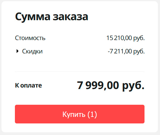 На цену на скриншоте не смотрите, там сразу дается купон на скидку в 7210 рублей, и она работает, я проверил, так что цена - 8000 рублей (до 15 мая).