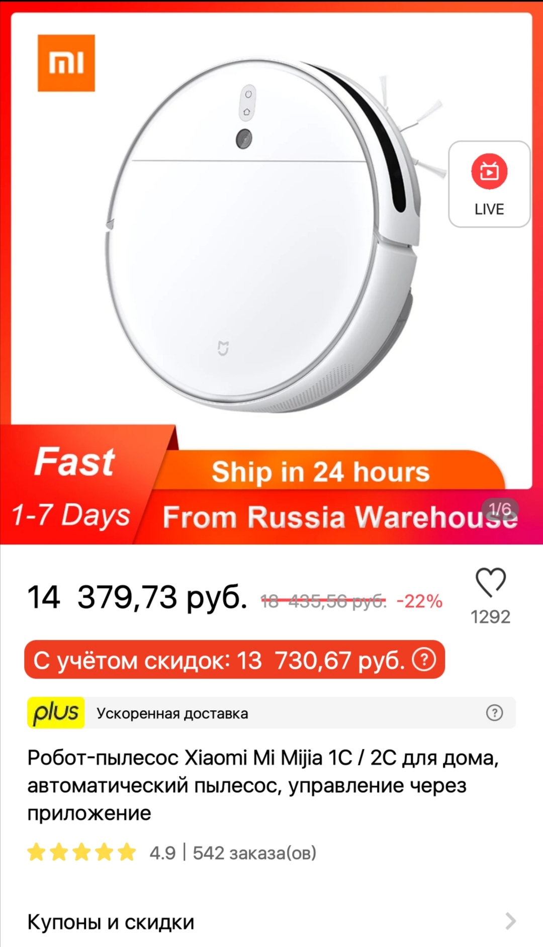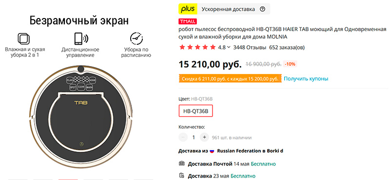 Доставляется быстро с российского склада, на "Яндекс.Маркете" на него цена - 11 тысяч рублей, так что имеет смысл, скидка действительно есть. Кстати, отзывов на этот робот-пылесос - под 4 тысячи, рейтинг 4,8.