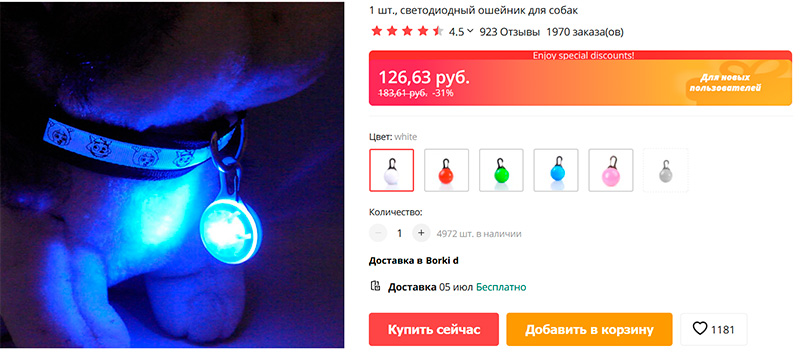 Светящийся светодиодный брелок-насадка для собачьего ошейника - чтобы не терять домашнего любимца из вида при прогулках в сумерках и в темноте.