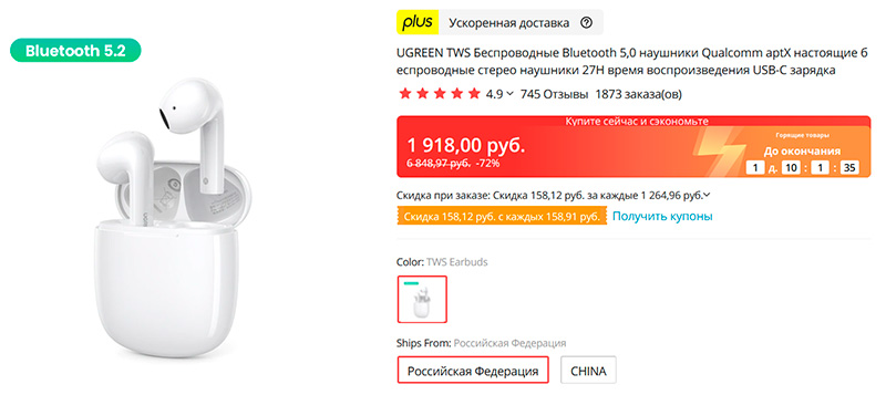 Ugreen HiTune H3. Быстрая доставка с российского склада, поддержка aptX