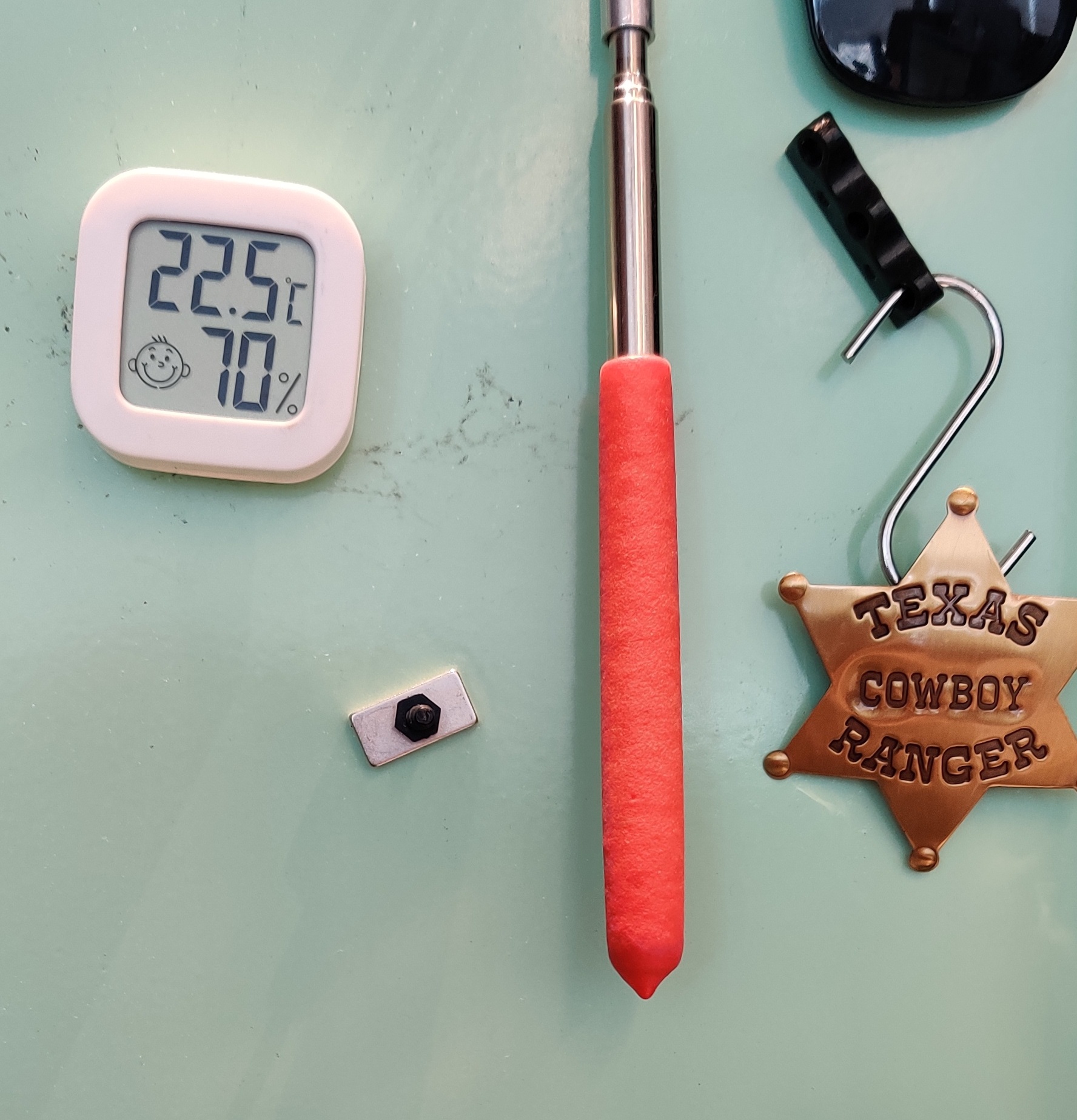 Качественные магнитные ограничители/держатели различных цветов. Круглая часть крепится лентой 3M, входящей в комплект. Я именно такие и использую, удобные.