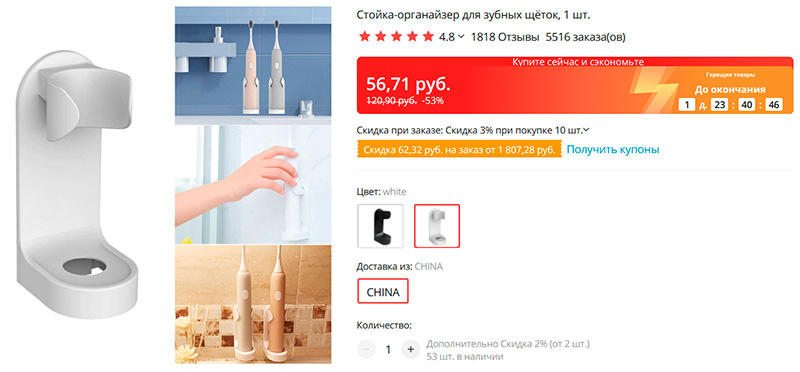 Это я себе искал и наконец-то нашел то, что нужно, - настенный держатель для электрической зубной щетки. Крепится входящим в комплект двусторонним скотчем. Совместим практически со всеми моделями. В нижней части держателя есть отверстие для зарядного кабеля. Два цвета - белый и черный.