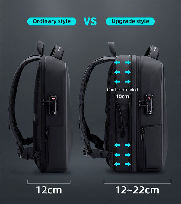 Недорогой рюкзак-трансформер с защитой от краж. На задней части рюкзака находится специальная вставка, которая защищает отделение для ноутбука при падении. Подходит для ноутбуков с дисплеем размером до 15,6 дюйма, имеет дополнительное скрытое отделение, позволяющее увеличить вместительность рюкзака, тут также есть кодовый замок, фиксирующий закрытие молнии, порт для зарядки гаджетов, карман для мелочи и карт на лямке, а также ремень для переноски рюкзака на телескопической ручке чемодана. Материал рюкзака - водонепроницаемый.