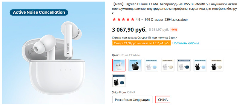 Недорогие наушники в стиле AirPods Pro от достойного производителя - Ugreen HiTune T3. Есть активный шумодав (два режима, включая режим прозрачности), поддерживается соединение по Bluetooth 5.2, поддерживается кодек AAC. Автономность - до 7 часов на одном заряде. С зарядкой от кейса - до 24 часов. Управление - сенсорное. Два цвета (черные, белые), есть варианты заказа с дополнительным кейсом другого цвета.