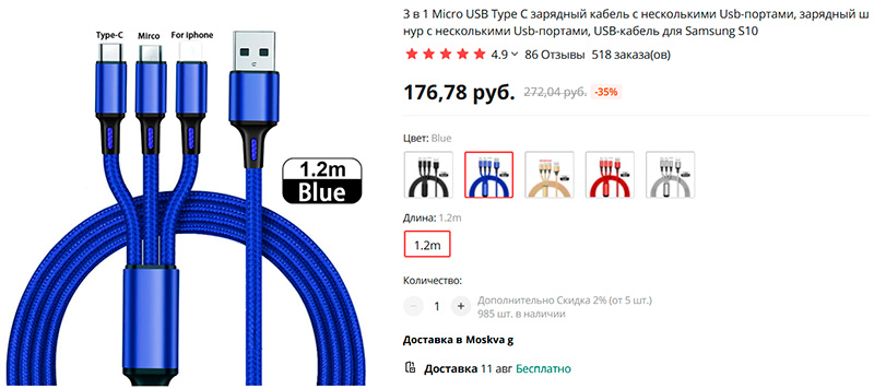 А есть кабели, чтоб не 3 разных в 1, а, например, 3 Type-C?