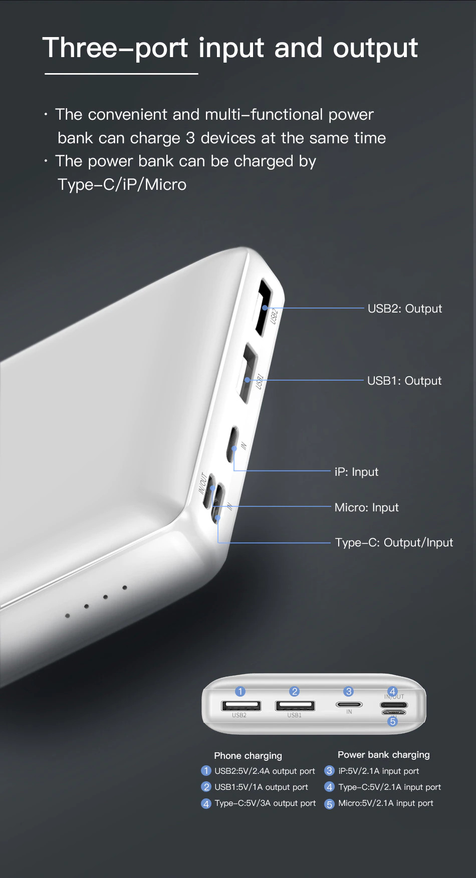 IP/Type-C/Micro : DC 5 В = 2.1A макс