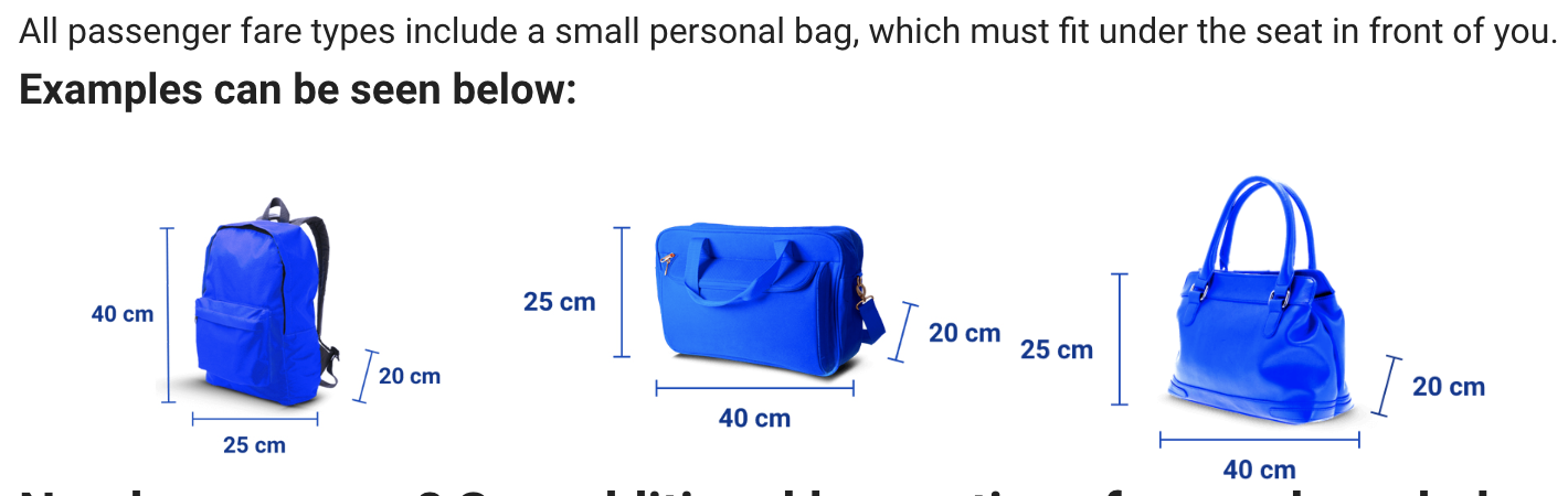 В Британии 40 см в длину - это нижний предел. Меньше нет ни у кого из лоукостеров. У RyanAir самые строгие требования: