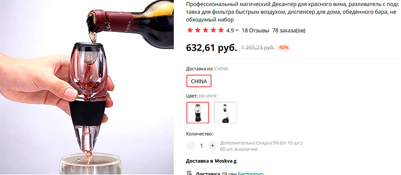 Один из самых удобных аэраторов для красного вина, я именно этот вариант и использую. С ним можно не париться со всякими декантерами, а просто наливать вино в бокал через данное устройство, чтобы вино быстро насыщалось кислородом (это реально очень влияет на вкусовые качества красного вина, особенно выдержанного). Варианты, которые вставляются в горлышко бутылки - неудобные, потому что через них вино проходит медленно, да еще и проливается нередко (у меня такие есть). А через этот проходит довольно быстро. Механизм очень простой, служит долго. Тут есть еще вариант с дополнительной подставкой, но она вряд ли имеет смысл: хватает самой обычной, которая идет с этим аэратором.