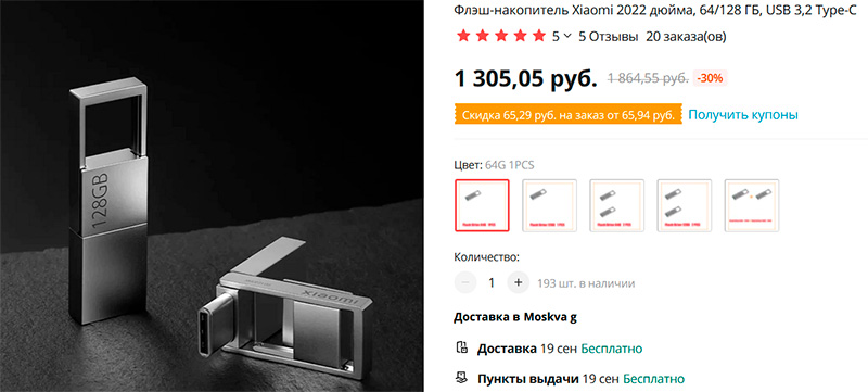 Компактная флешка с двумя режимами подключения - USB-A (ноутбуки, ПК) и USB-C (смартфоны, планшеты). 64 и 128 ГБ, поддержка USB 3.2.