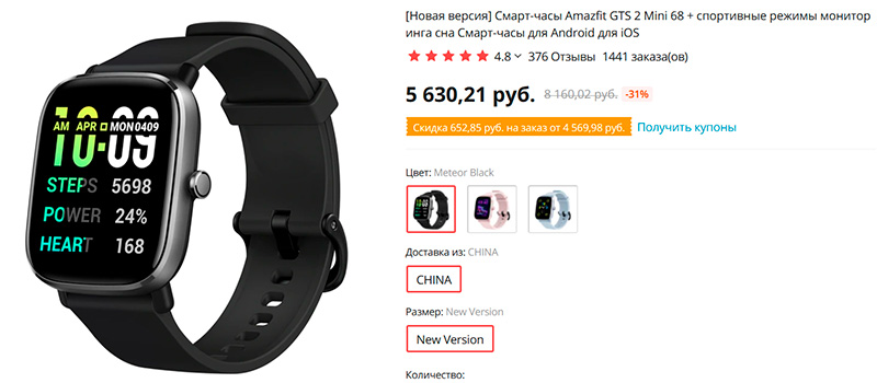 Amazfit GTS 2 Mini на официальном сайте $79.99, Amazfit GTS 4 Mini - $94.99. При разнице в $15 имеет смысл брать последние с оф.сайта, там много обновлений, чуть больше экран и батарейка, более новые датчики и софт и т.д.