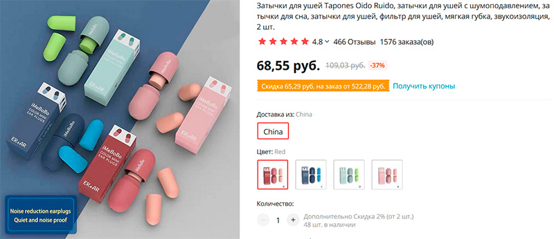 Затычки для ушей Tapones Oido Ruido с контейнером - различных цветов. (Почему у них чисто испанское название - не знаю.) Заказал себе парочку для дорожного несессера, проверю. Я без этих затычек уже давно вообще редко сплю (на ночь не использую, но использую если просыпаюсь утром и во время сиесты, также всегда использую в поездках). Кстати, мои стандартные затычки - от 3M, я считаю их лучшими. Китайцы вроде их тоже предлагают, однако я не знаю, это натуральные 3М или нет. С другой стороны, там же все просто - пеноматериал и все дела.