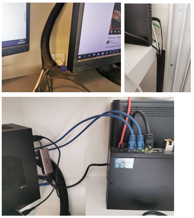 я приматывыю липучками к ножкам столов, или делаю установки из профилей и углов, и к ним приматываю. Стяжки бывают до 30 см обычно, и они уже толстенные. А липучки бесконечной длины, хоть к дереву приматывай 😄
