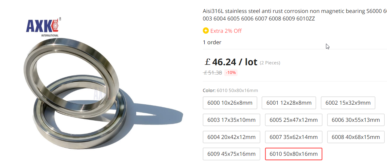 компактные подшипники большой ID из стали 316. Искал такие же локально в Англии, цена в 10 раз больше.