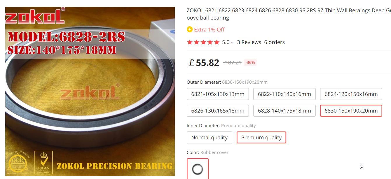 Мне нужно в идеале ИД = 150 мм, но пока не нашел на алишке. В МакМастере такой диаметр $1,000-2,000. Продолжу искать.