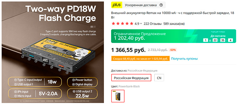 Внешний аккумулятор на 10000 мАч с дисплеем, поддержкой быстрой зарядки на 18 ватт и с мощностью на выходе до 22,5 ватт - в формате аудиокассеты. Забавная штука, заказал себе.