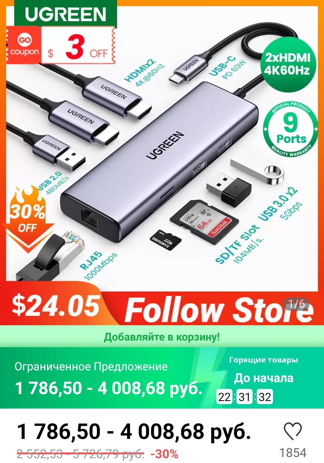 Недорогой OTG-кабель или USB-хаб типа "5 в 1" для ноута/смартфона с Type-C