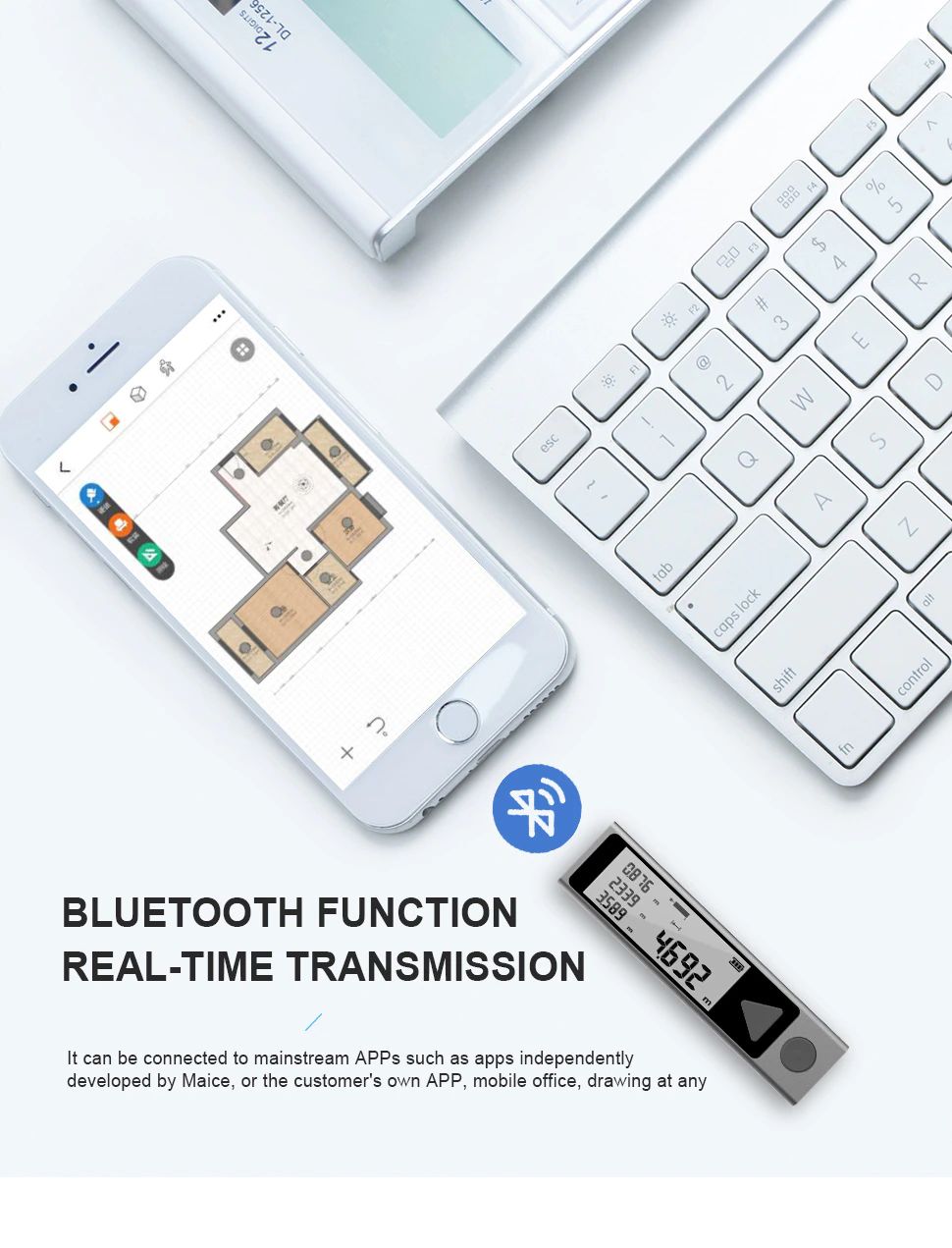Полезный девайс с подключением к телефону по блютуз, помогающий построить план помещения в реальном времени. Измерение горизонтали, вертикали, углов, объема, достаточно точное, погрешность примерно 3 мм на 50 м. Можно откалибровать. В ярком солнечном свете дальность падает. Много разных полезных интересных функций. Заряжается от микроюсб.