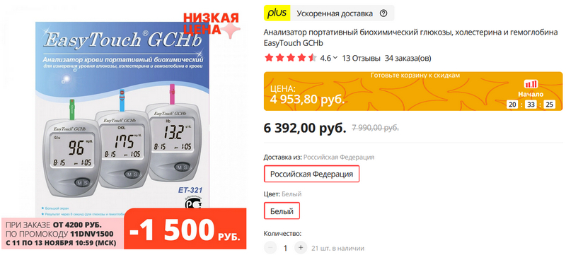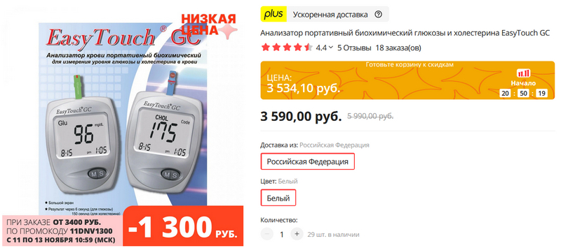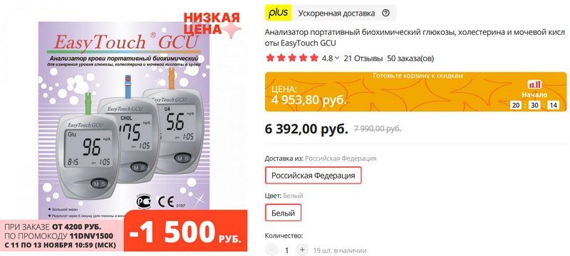На портативные анализаторы крови Easytouch (я сам ими пользуюсь и делал их обзор) к распродаже сделаны скидки и выдаются промокоды. Доставка с российского склада.