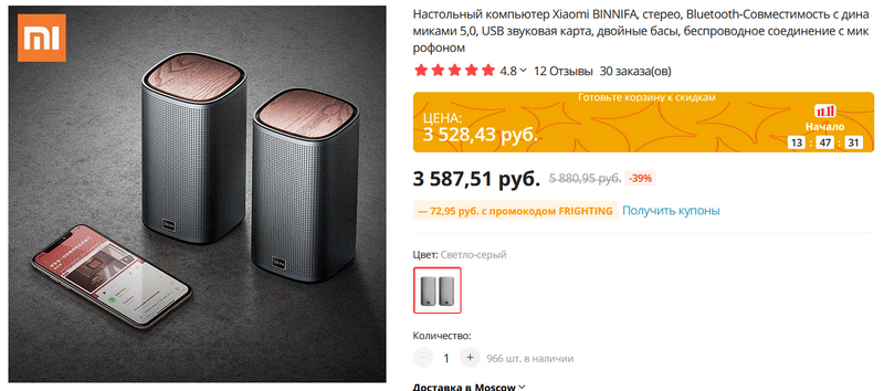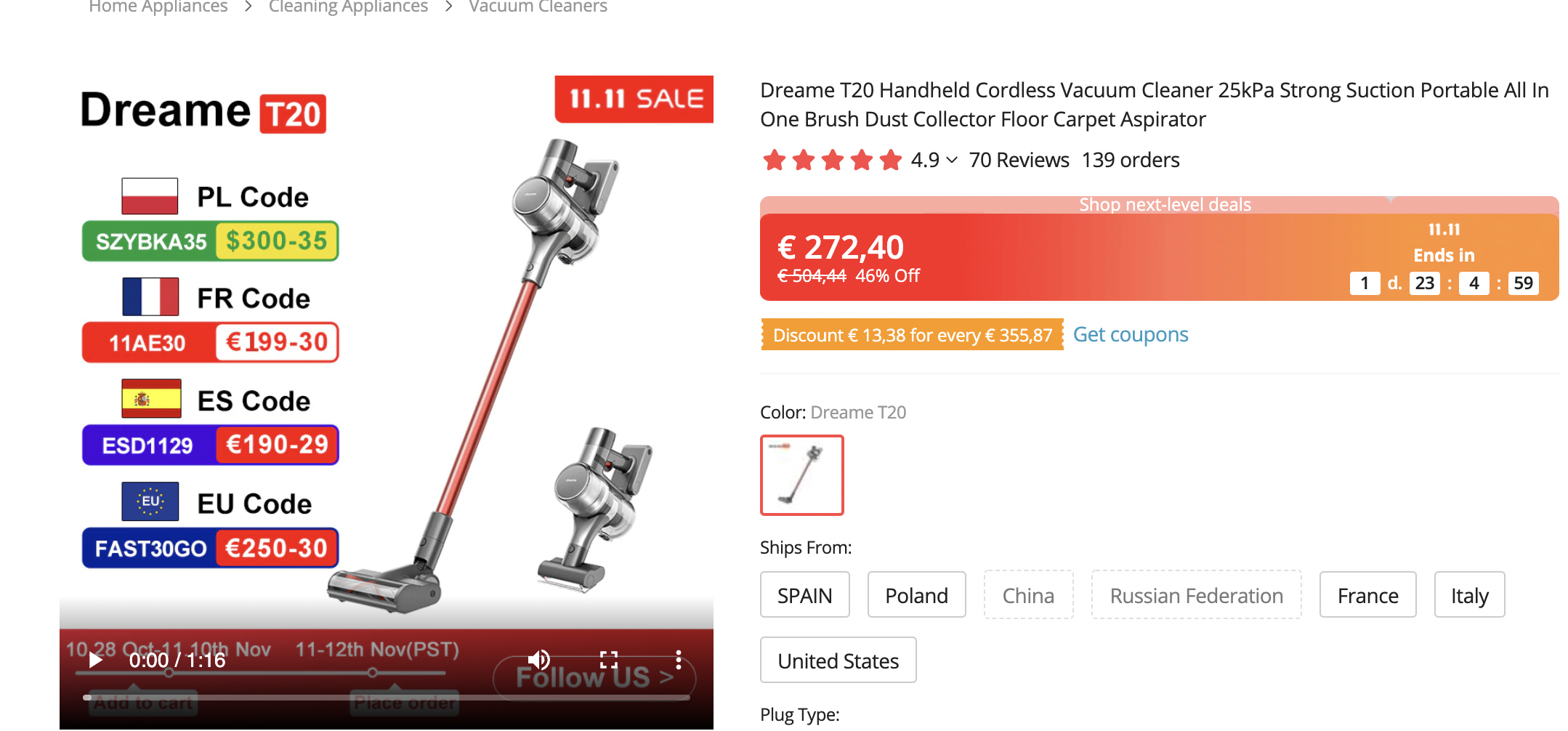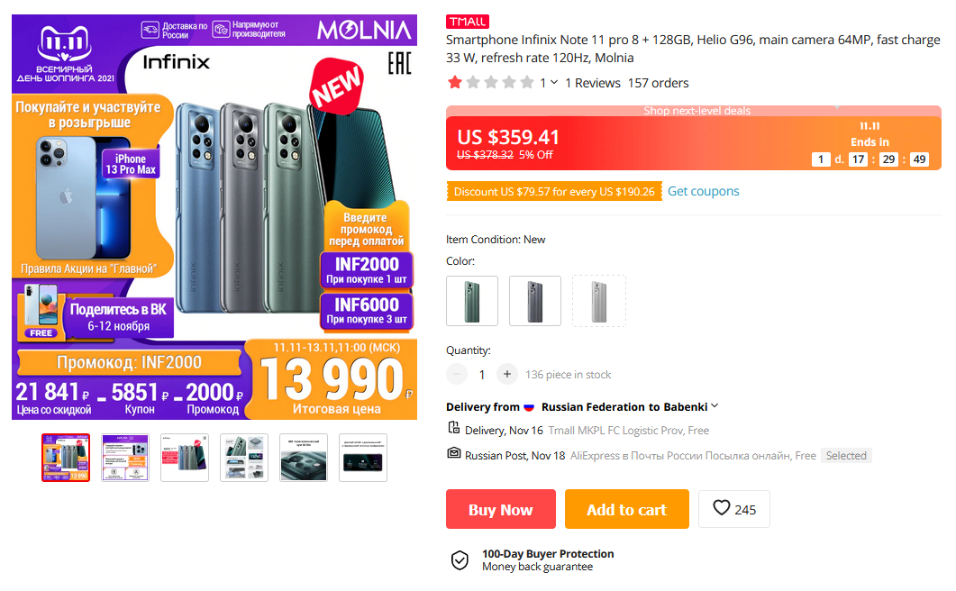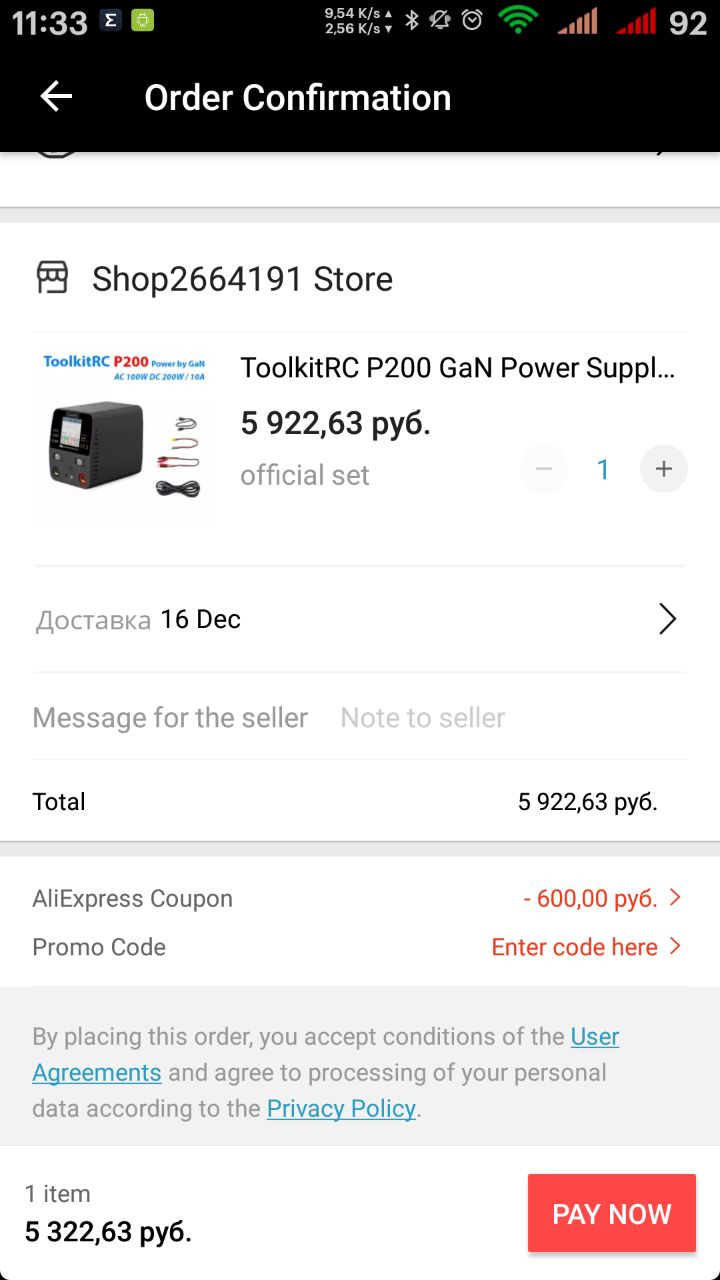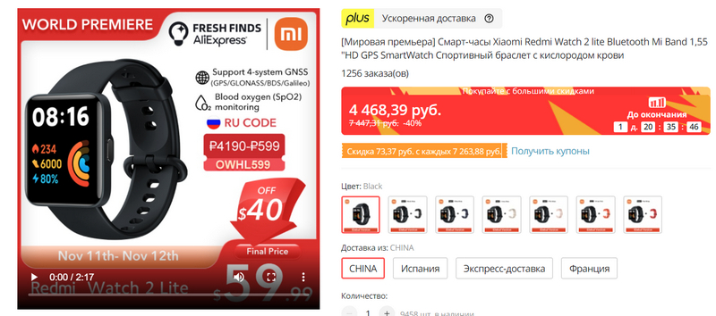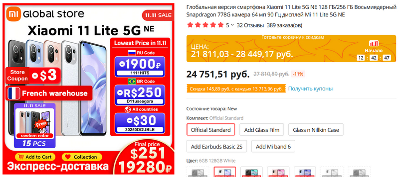 Но если использовать один из следующих промокодов: 11uberdeal200all или 11mobiltelefon200all или 11alidarom200all, то цена становится 34.48$.
