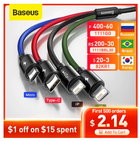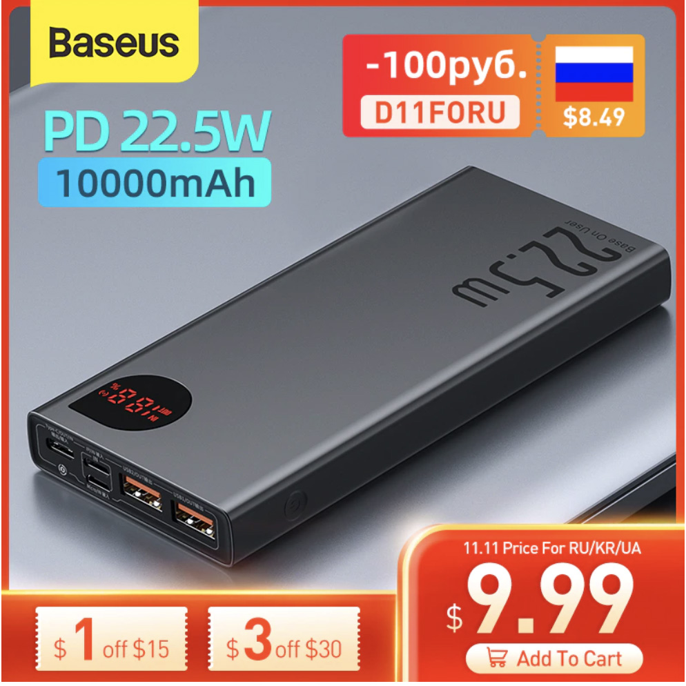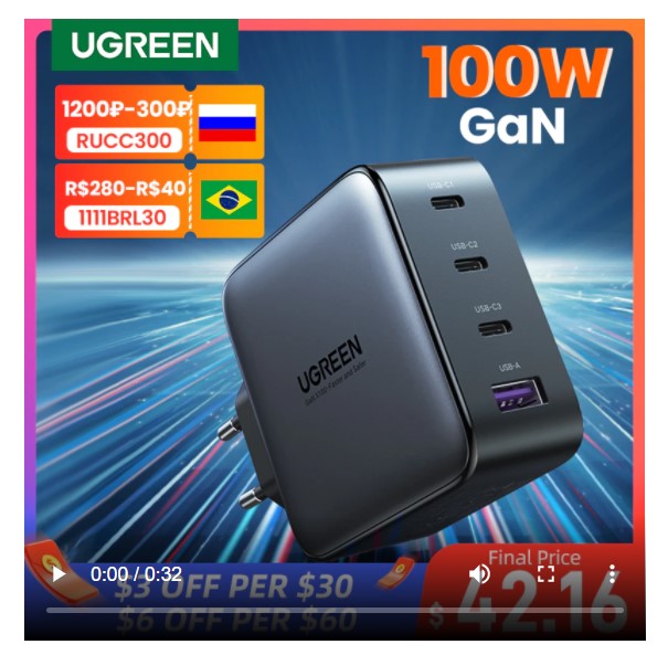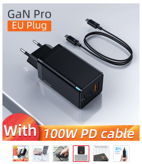за 1700р получаем на один порт type C меньше , зато с кабелем в комплекте и на те же 65Вт. С учетом, что ни одна зарядка этого типа ни 100вт ни 65 вт не отдаст на один порт, мощность суммарная , то мне 3 портов базеуса вполне хватит.