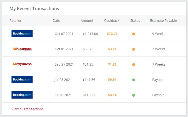 Но там ещё кроме Али много разных популярных сайтов. Мне особенно нравится Booking - возврат 6%. Больше я нигде не встречал. Если вы заказываете гостиницы и машину через Букинг - просто "маст хэв". Для примера даю скрин своих транзакций за последнее время.