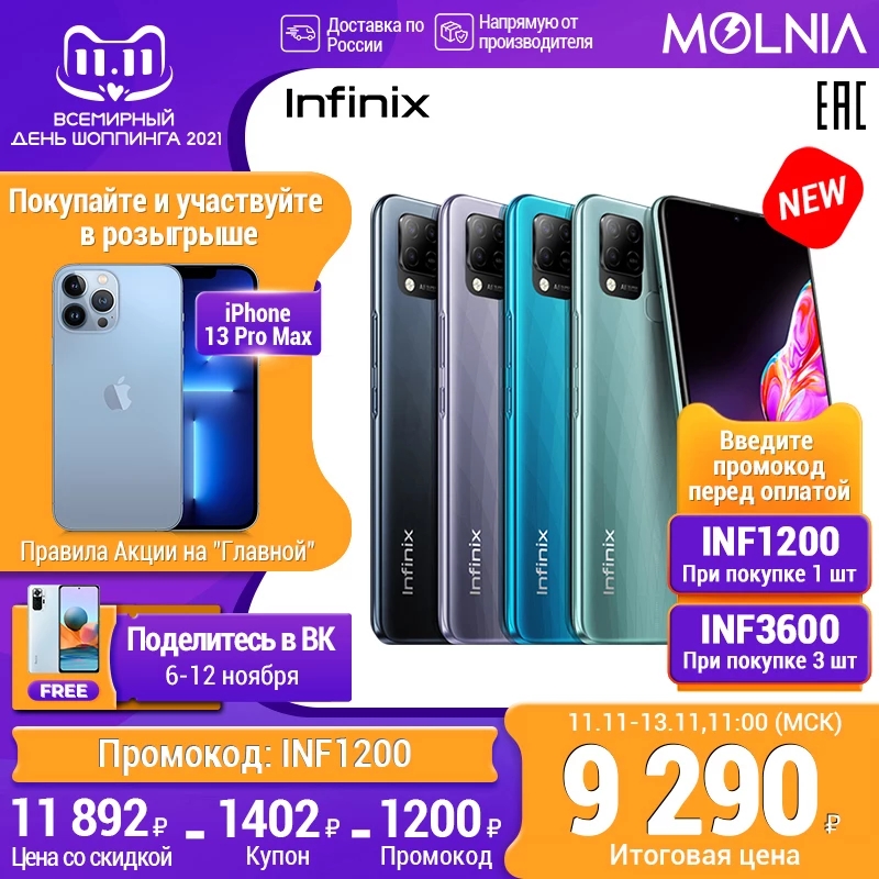 * Все промокоды действуют в период с 11 по 13 ноября, распространяются на заказы в страны СНГ без Украины. Количество активаций ограничено.