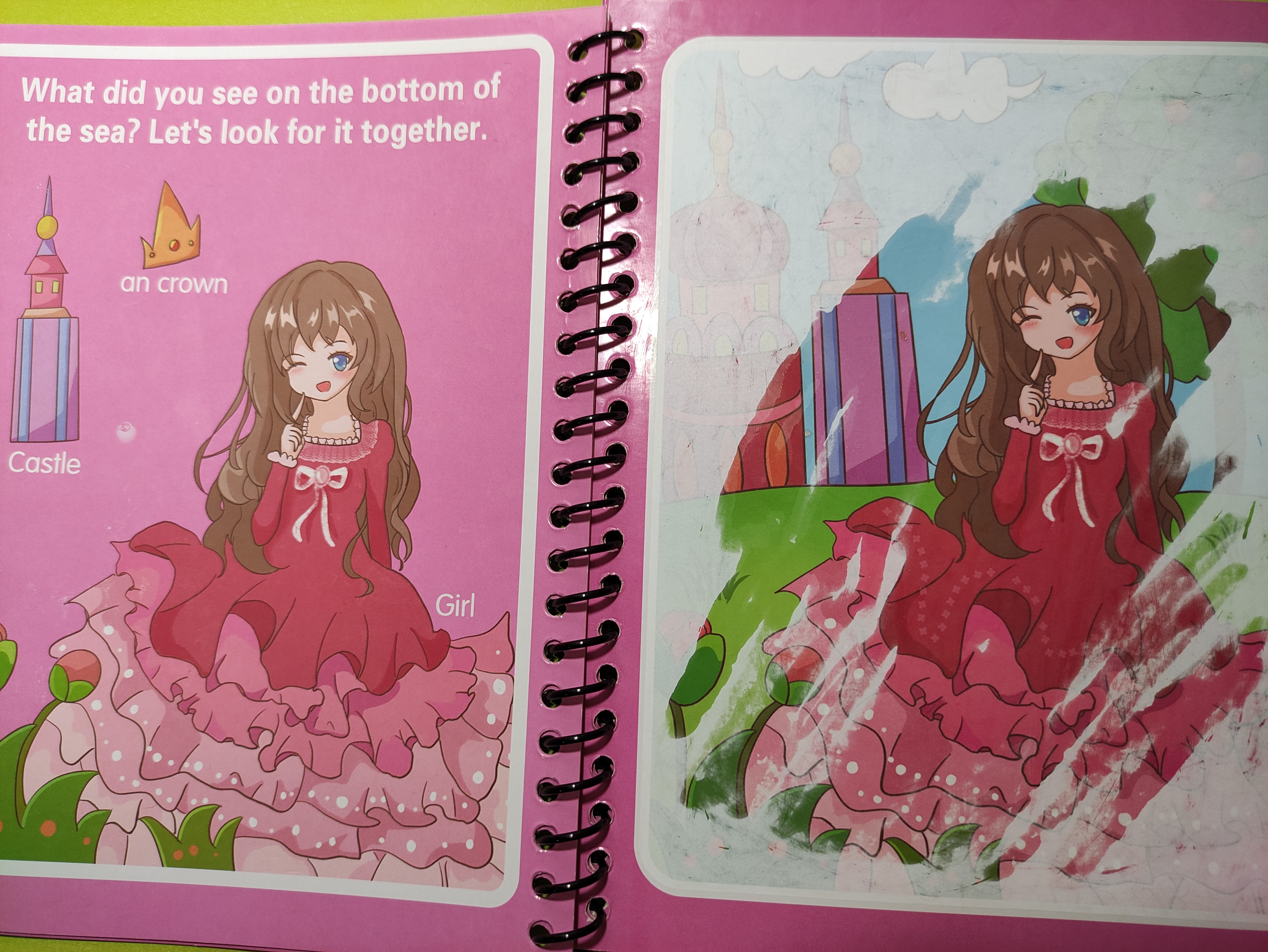 Начну с простого - многоразовые водные раскраски. Это рисунки, проявляющиеся, если их намочить и исчезающие после высыхания. И так можно играться очень долго, дети заняты, родители довольны. Сегодня раскраски со скидкой, получается намного выгоднее офлайновых многоразовых, продавец вообще молодец, с ним можно договариваться, если берешь партию. Очень советую взять сразу ручки для водных раскрасок, они по этой же ссылке. Их можно пользовать не только для многоразовых, но и для обычных водных раскрасок. Это просто кисточка в форме ручки с резервуаром для воды. Причем у нас одна закручивается направо, как и нужно, а вторая - налево, но работе это не мешает.