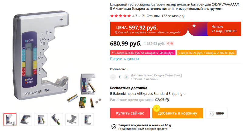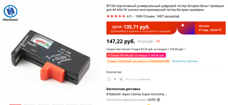 Upd: Однако замечу, что Алексей Надежин рекомендует другой тестер - BT-168. У него есть нагрузка и он более точный.