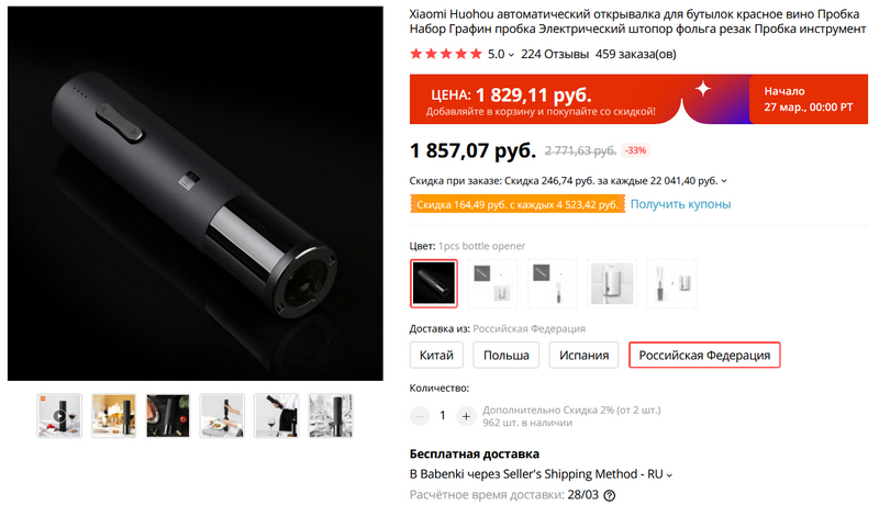 Еще один любимый гаджет, который у меня задействован каждый день - электропробочник Xiaomi Huohou. До сих пор живой, отлично работает, а, между тем, задействован почти каждый день. По ссылке он есть с доставкой из России, а если заказывать из Китая, то там можно в комплекте взять еще две очень полезных штуки - быстрый аэратор для вина и специальная пробка с помпой, позволяющая сохранять красное вино в недопитой бутылке. Также эти две полезные штуки можно купить отдельно. Ну и, конечно же, в любой семье, пьющей вино, должен быть в наличии цыганский пробочник, которым можно вытащить любую пробку - такую, с которой не справился пробочник со штопором. А такое бывает.