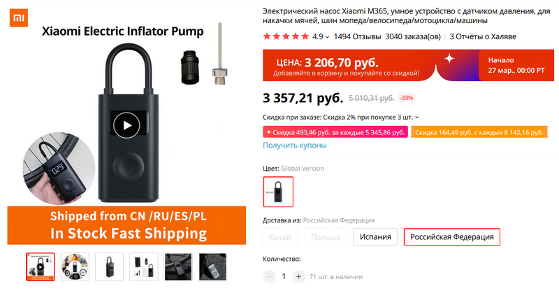 Компрессор Xiaomi для накачки мячей, шин велосипедов, мотоциклов, машин. Большое спасибо тому, кто порекомендовал - отличная штука. А я его нередко задействую: у меня одно колесо у велосипеда слегка приспускает - все никак не соберусь в мастерскую скататься (сам я безрукий, если буду пробовать заделать сам - совершенно непродуктивно потрачу кучу времени с непредсказуемым результатом), - так вот с этим компрессором - никаких проблем. Приспустило - быстренько подкачал с полным комфортом.